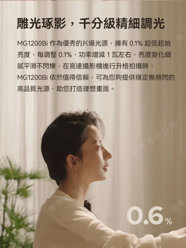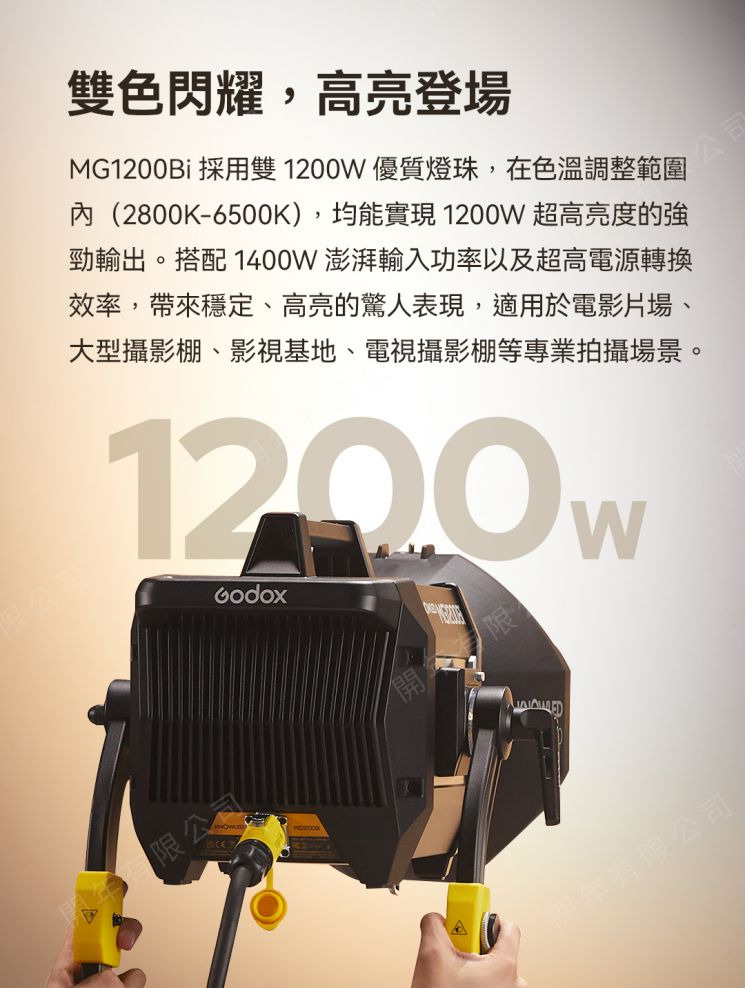 MG1200Bi延續了諾力旗艦系列的強悍基因,全新自研燈珠技術,實現雙色溫1200W全功率輸出,用非凡亮度,點亮創作激情,開啟專業LED影視燈高亮新時代。