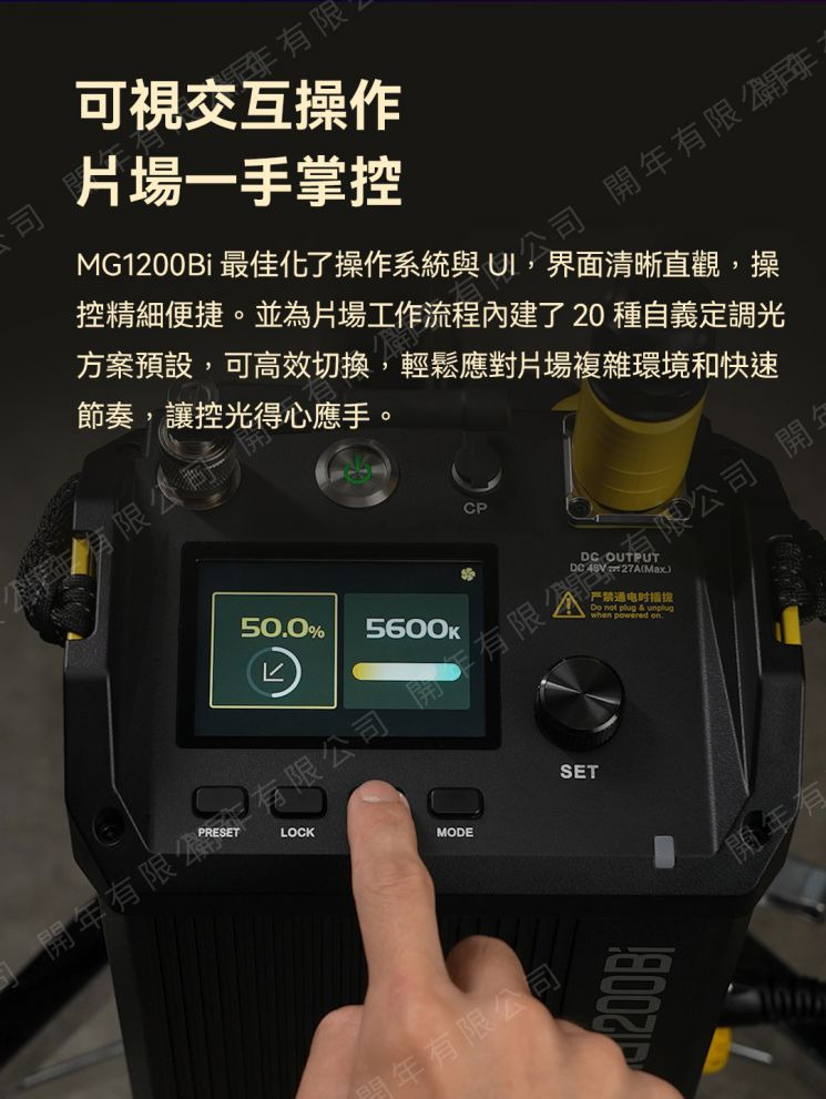 .最佳化UI介面,操控直覺快速。並為片場工作流程內建了20種自義定調光方案預設,輕鬆應對片場複雜環境和快速節奏。
