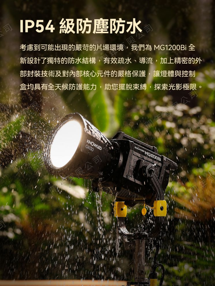 .IP54防塵防水:獨特的防水結構有效疏水、導流,加上精密的外部封裝技術及對內部核心元件的嚴格保護,讓燈體與控制盒均具有全天候防護能力。