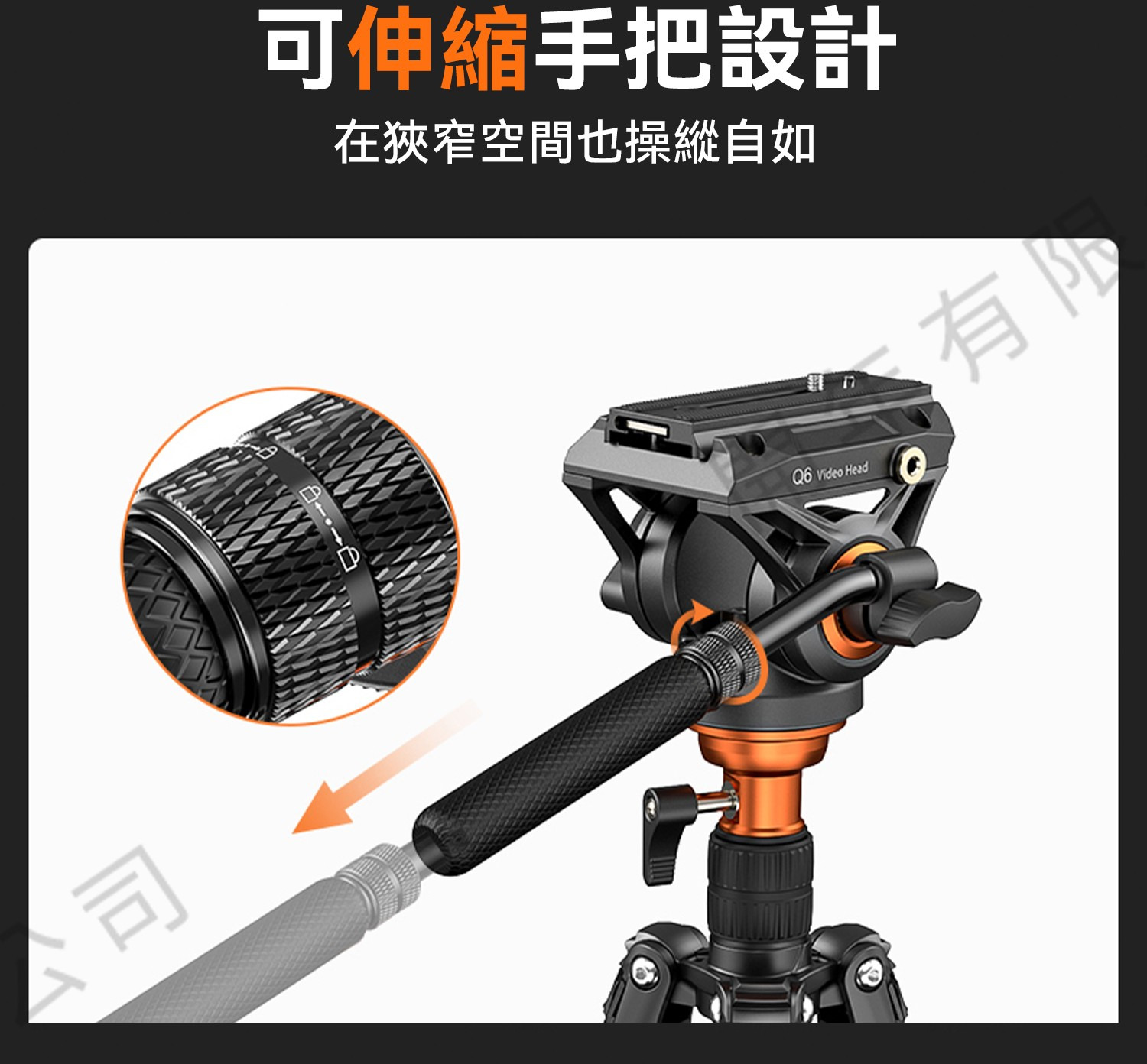 可伸縮手把:這個獨特的設計使三腳架更易於攜帶和調整,提高了使用的便捷性。