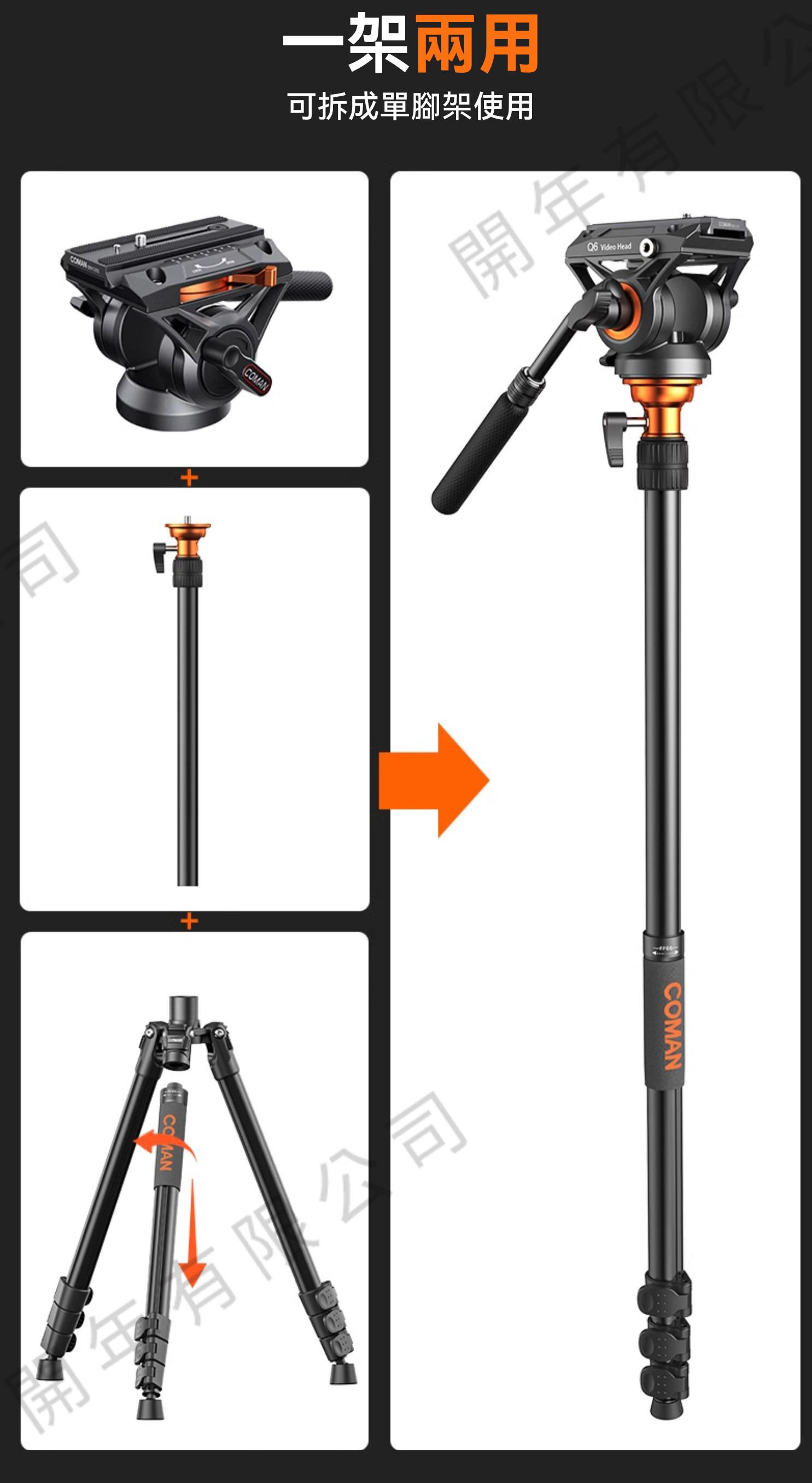 多功能設計:這款三腳架不僅可以作為三腳架使用,還可以輕鬆拆解成單腳架,滿足不同的拍攝需求。