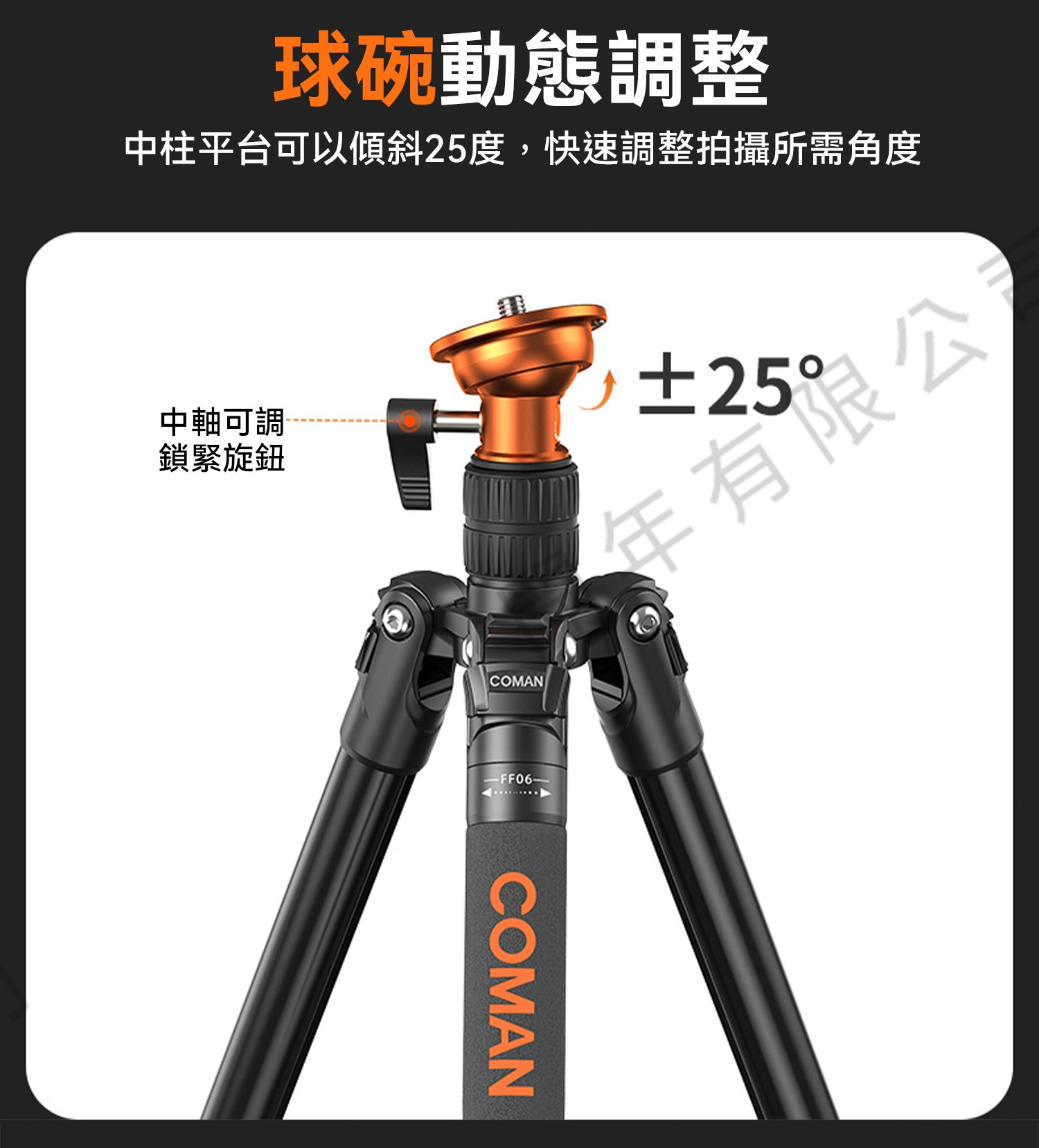 Coman FF06S (DF06S) 多功能鋁合金三腳架附全新Q6雲台:彈性與效率的完美結合