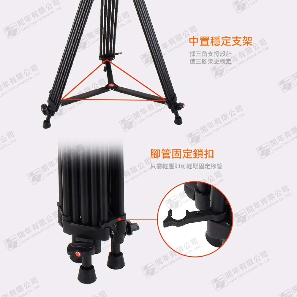 快速鎖緊機制:腳管採用扳扣和旋轉式鎖緊設計,確保快速且穩定的高度調整,在繁忙的錄影環境中提供高效操作。
