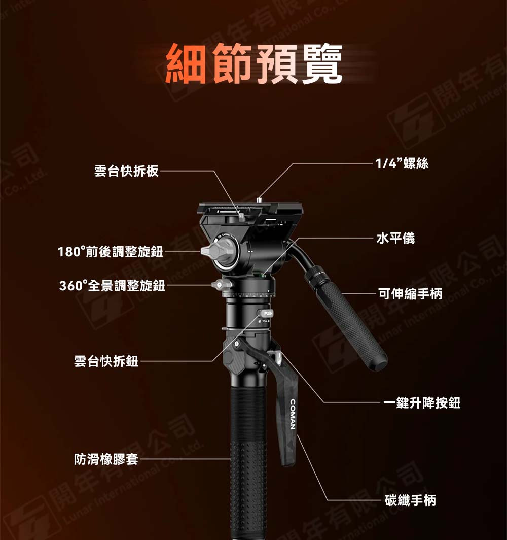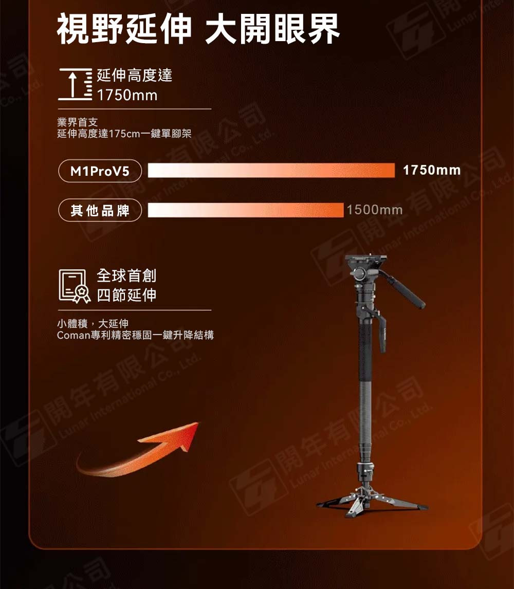 腳架尺寸:收納長度765mm / 延伸長度1750mm