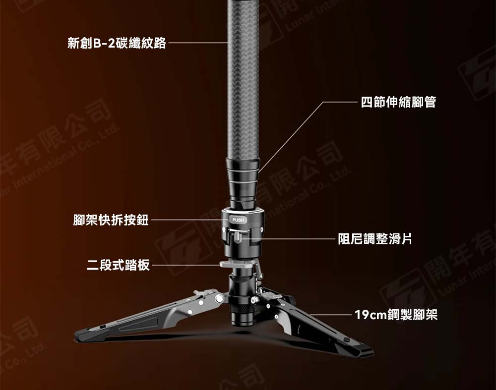 新創B-2碳纖紋路,使腳管在承重與延伸時依然保持穩定
