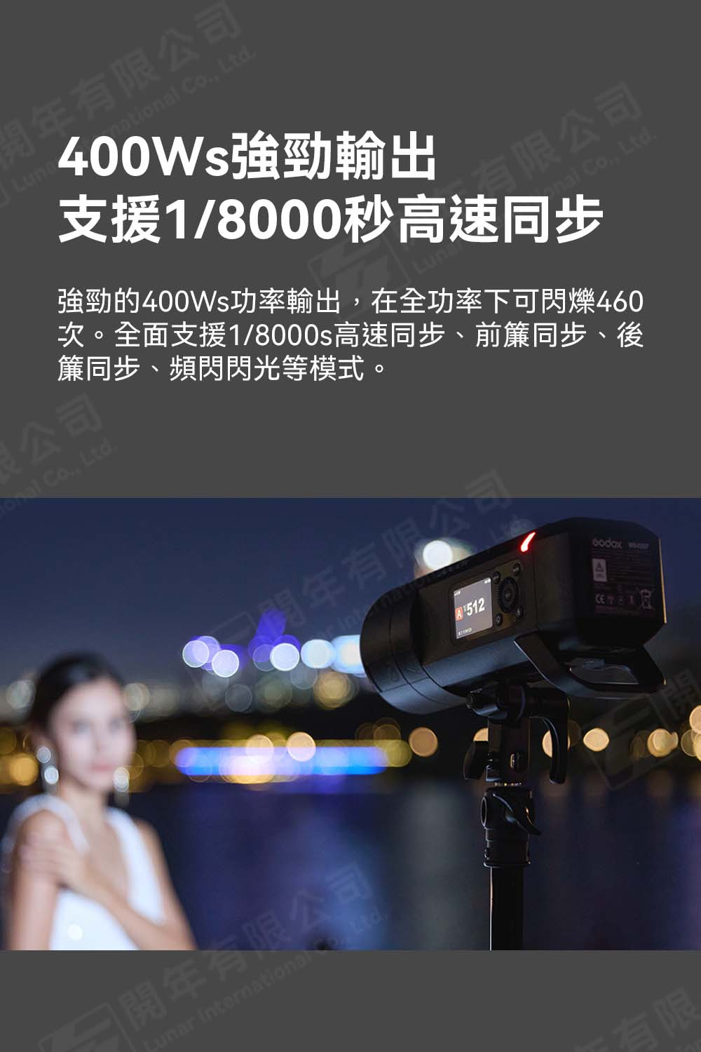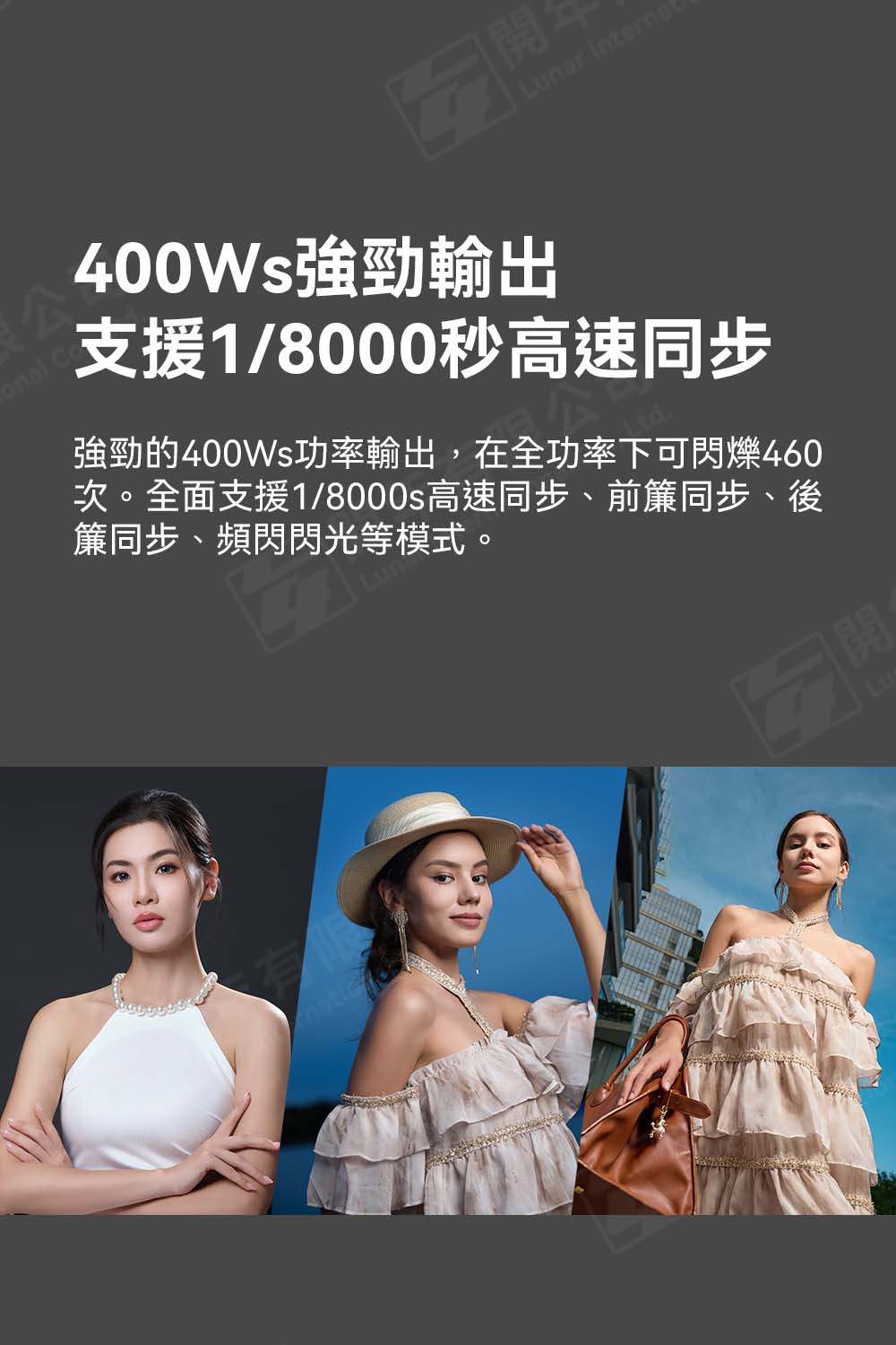 .400Ws強勁輸出,支援1/8000秒高速同步