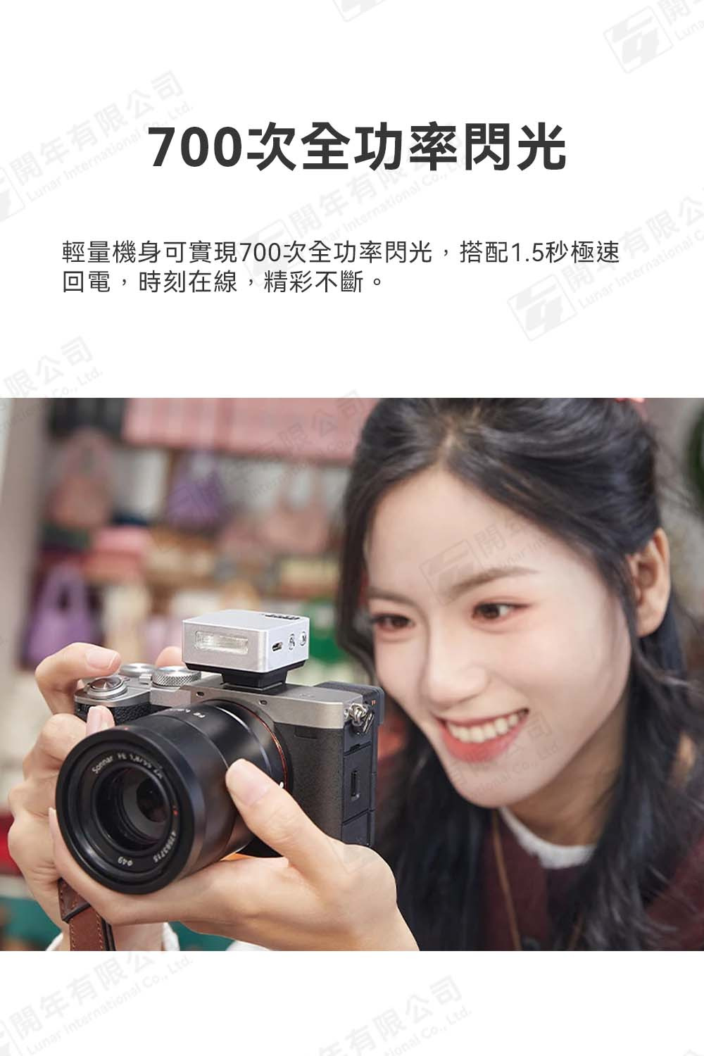 輕量機身亦可實現700次全功率閃光,結合1.5秒極速回電,時刻在線,精彩不斷。