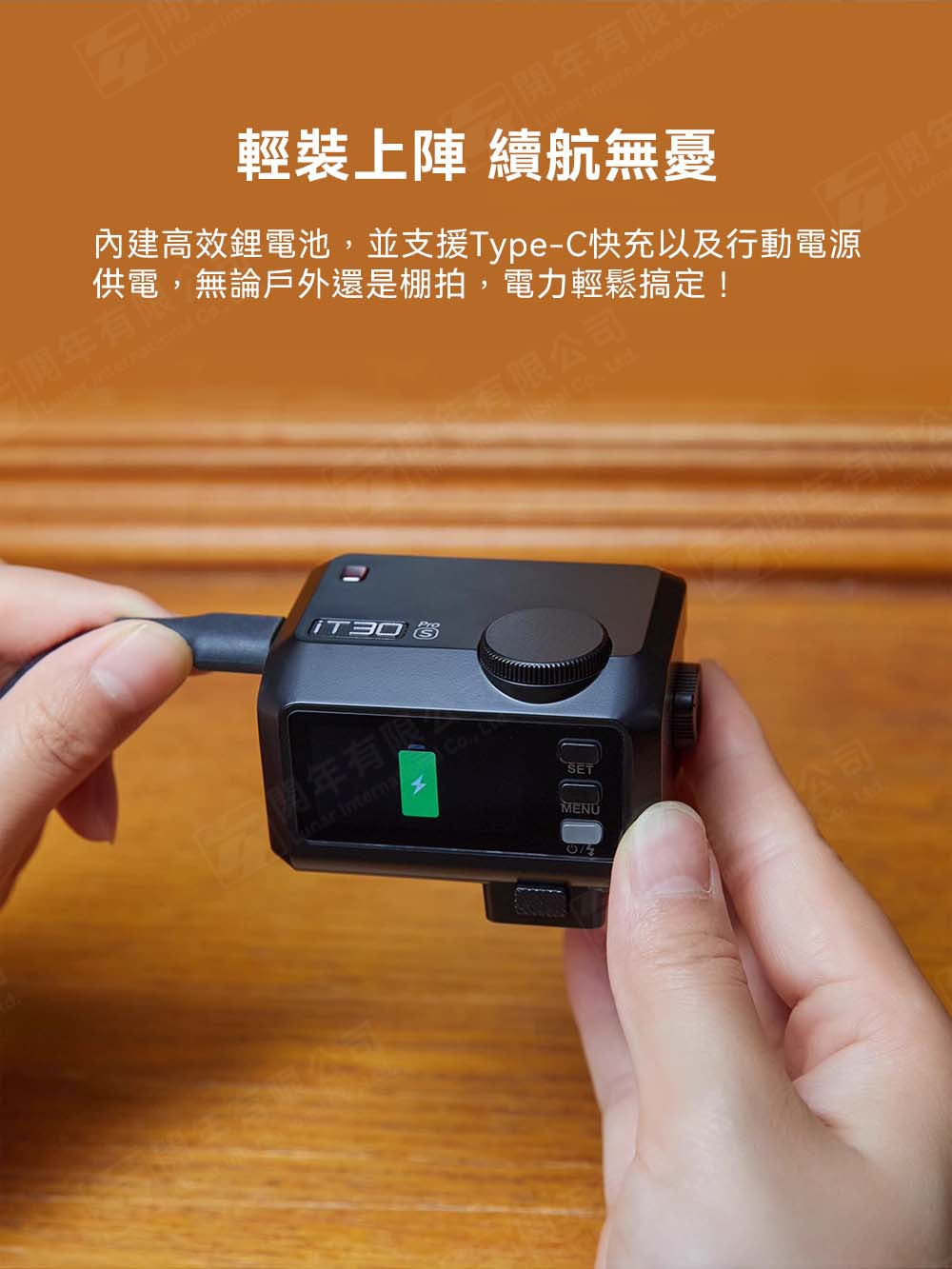內建高效鋰電池,並支援Type-C快充以及行動電源供電