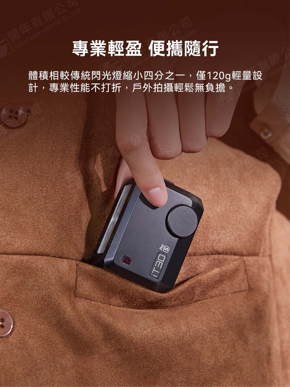 體積相較傳統閃光燈縮小四分之一,僅120g輕量設計