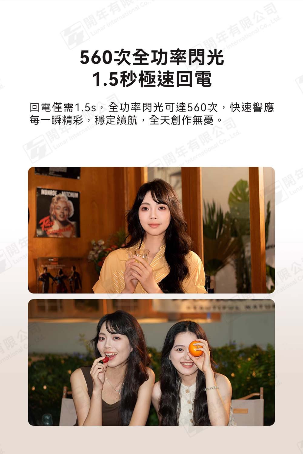 回電僅需1.5s,全功率閃光560次,快速響應每一瞬精彩