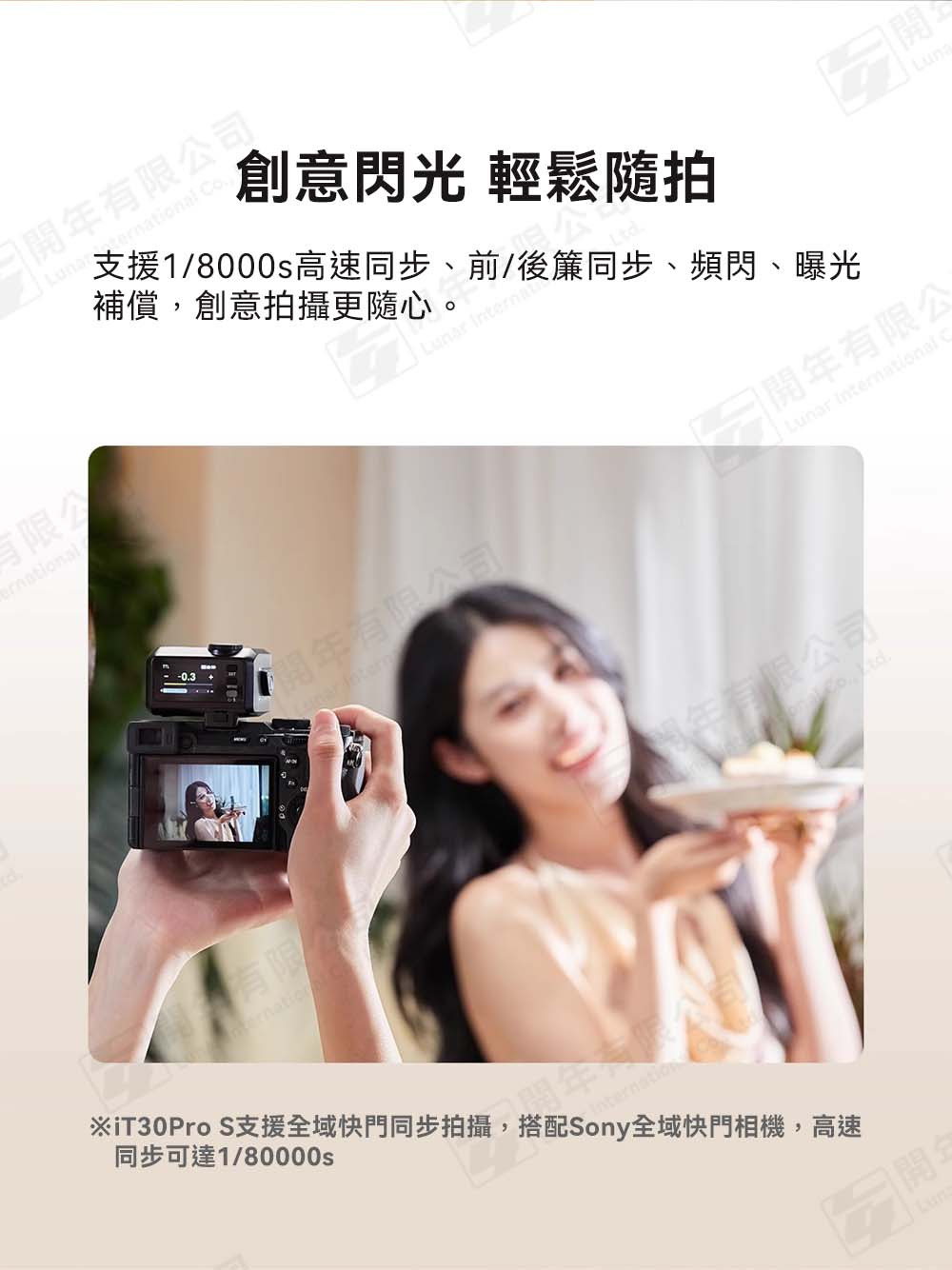 支援1/8000s高速同步、前/後簾同步、頻閃、曝光補償,創意拍攝更隨心