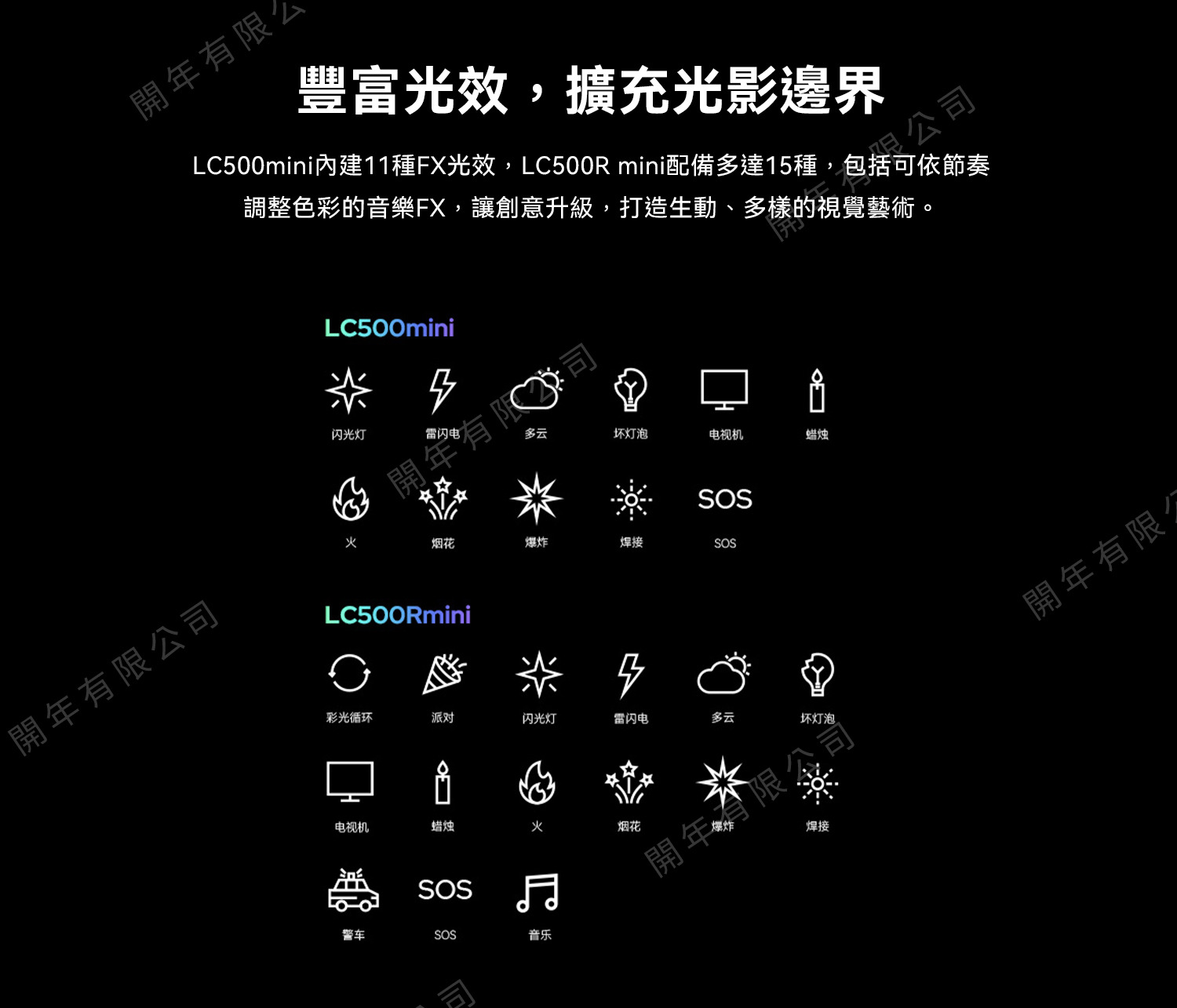 .LC500mini內建11種FX光效/LC500R Mini內建15種