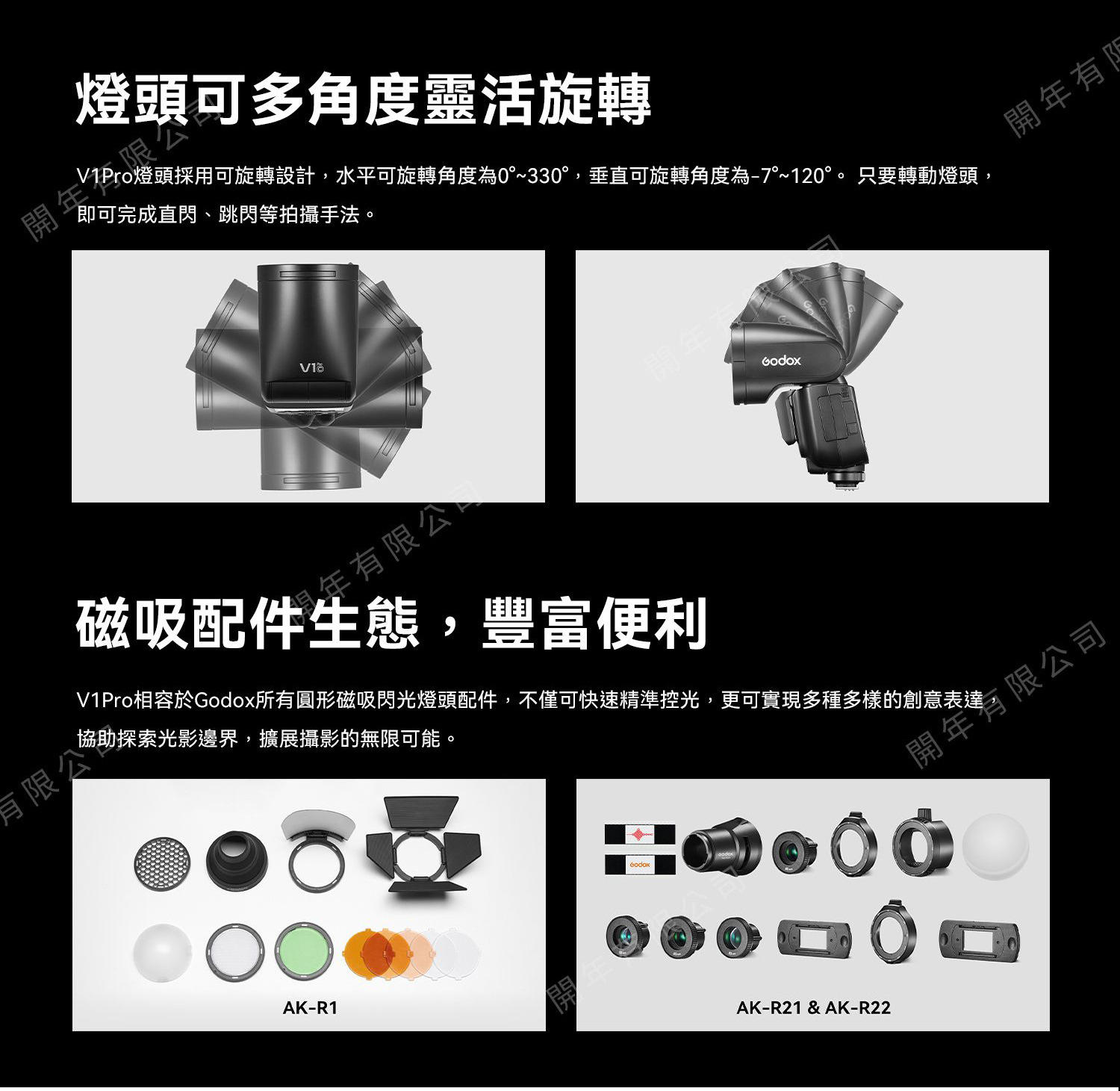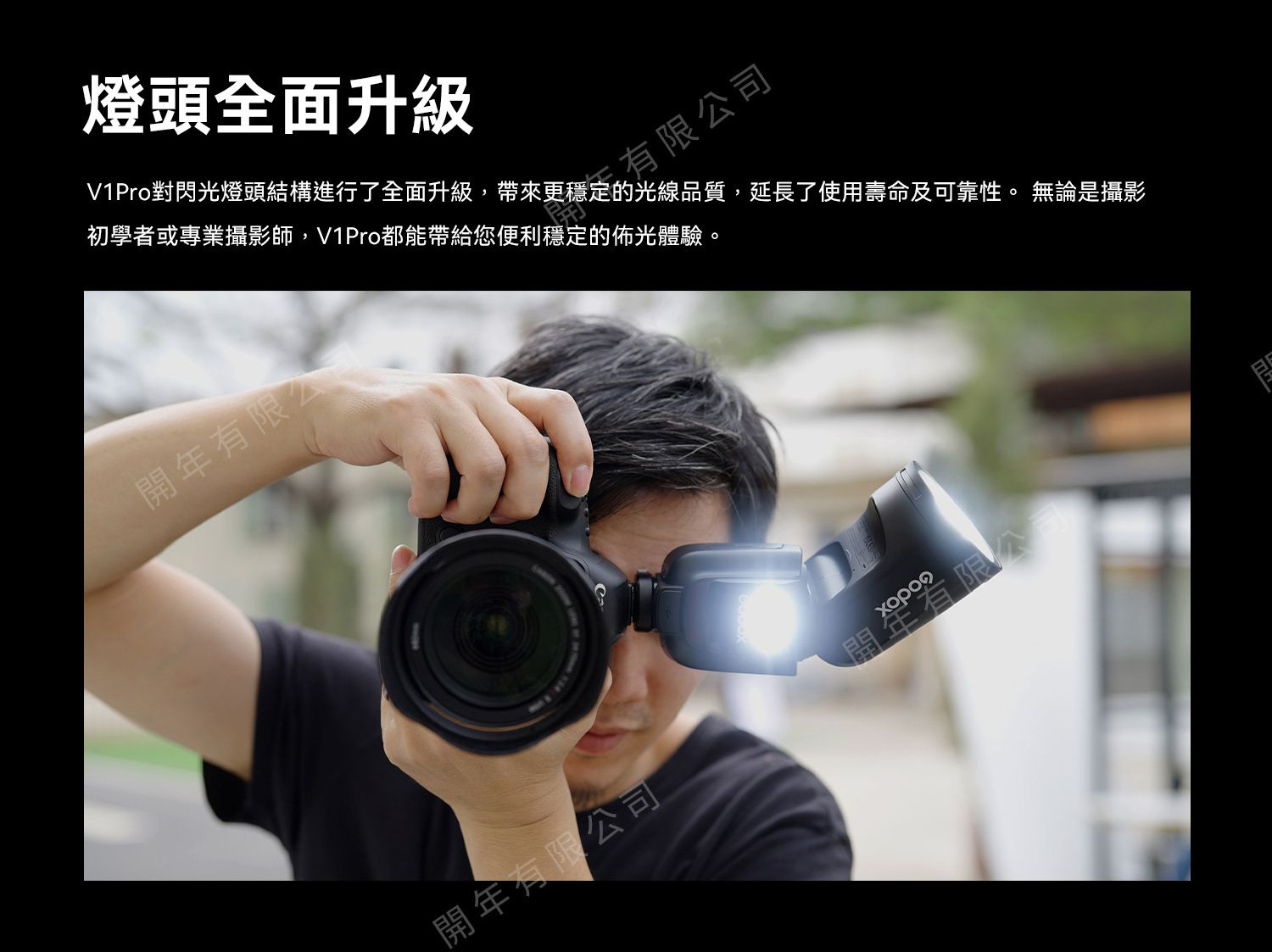 V1Pro對閃光燈頭結構進行了全面升級,帶來更穩定的光線品質,延長使用壽命及可靠性。 無論是攝影初學者或專業攝影師,V1Pro都能帶給您便利穩定的佈光體驗