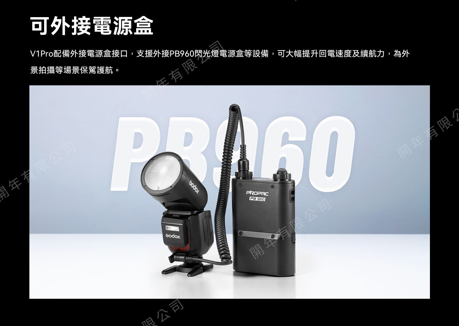 配備外接電源盒接口,可外接PB960閃光燈電源盒等設備,大幅提升回電速度及續航力