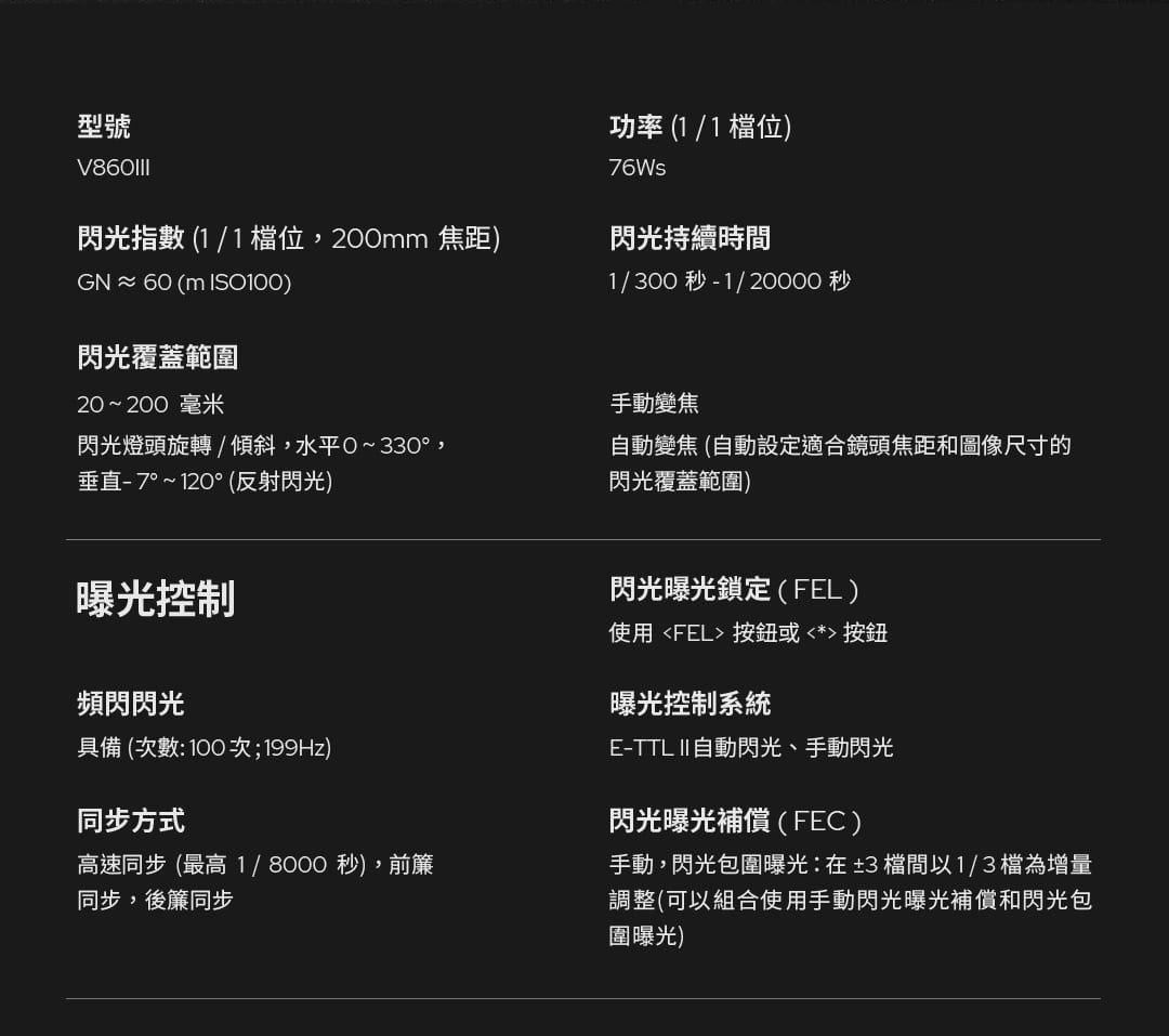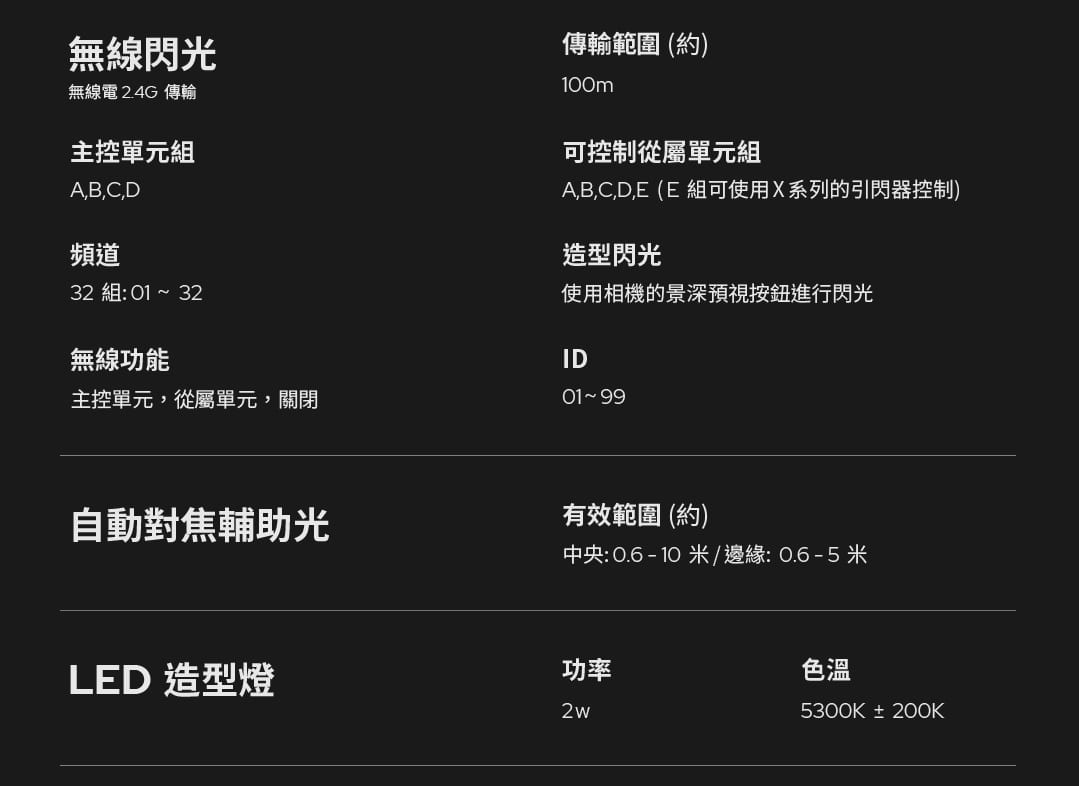 .支援1/8000秒高速同步、包圍曝光、後簾同步、頻閃閃光等功能