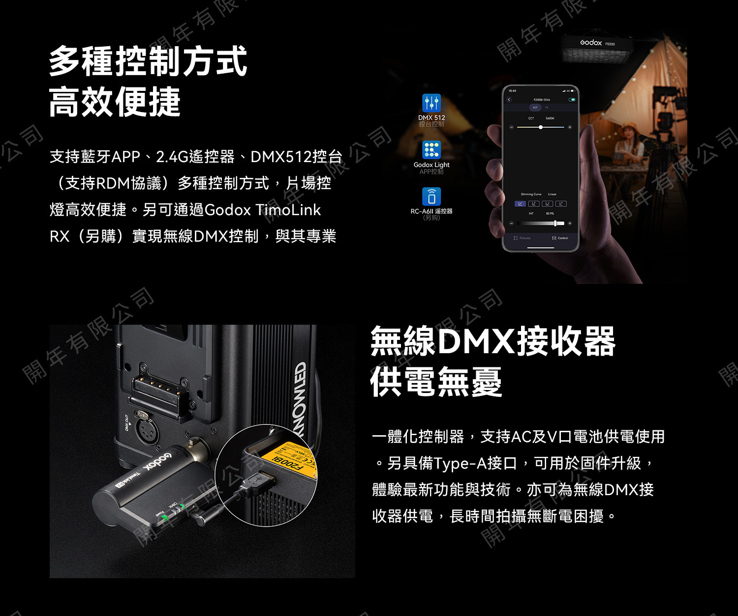 控制方式: DMX512(支援RDM協議), APP, 2.4G(遙控器另購)