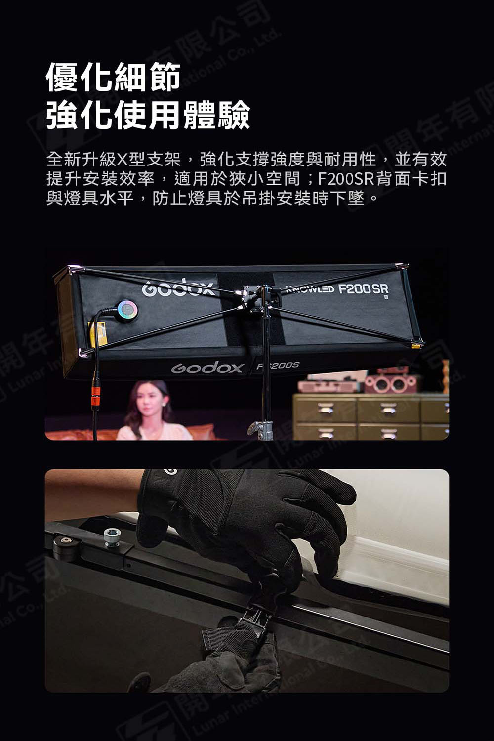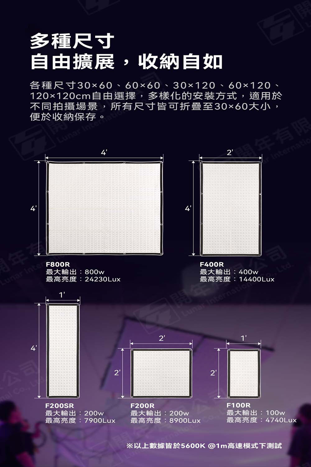 F800R維持與F600Bi相同尺寸,功率提升30%,重量降低25%;可彎曲燈體設計,提供靈活佈光選擇