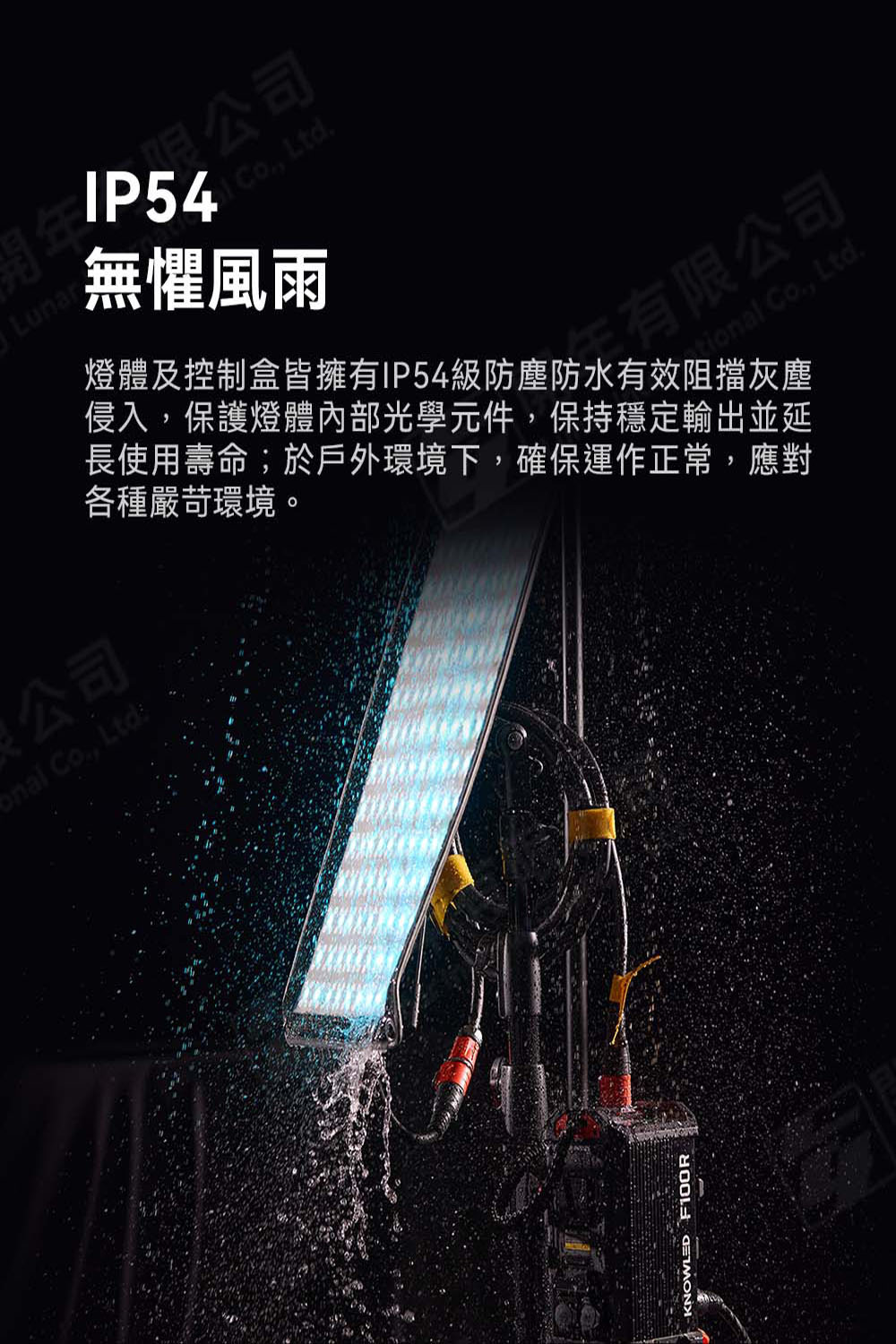 燈體及控制器皆擁有IP54防水級,有效阻擋灰塵及水分侵入,保護燈體內部光學元件,延長使用壽命