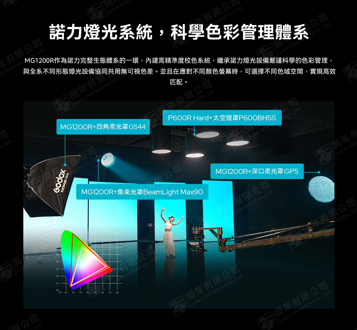 採神牛G卡口,配件系統豐富完善,可帶來多樣且精準的控光效果;可與MG1200Bi & MG2400Bi 共用配件,具有極高的通用性。