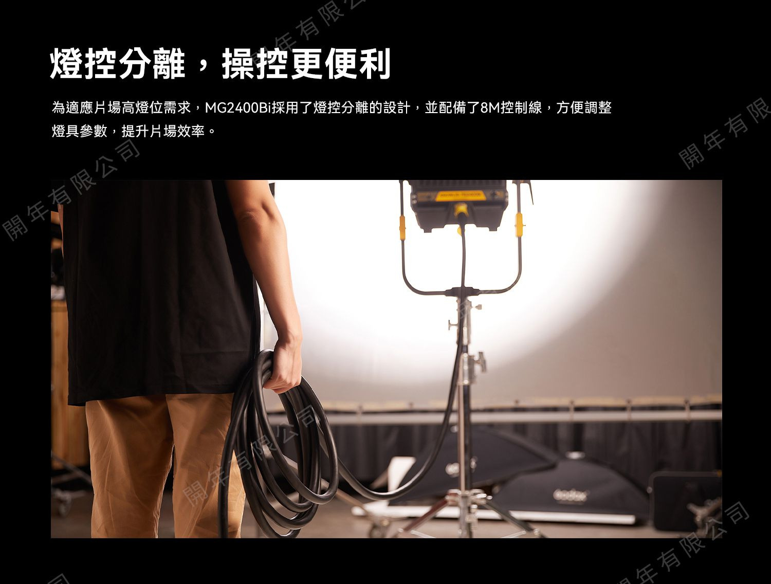 採燈控分離設計,並配備8M控制線,方便調整參數,提升片場效率