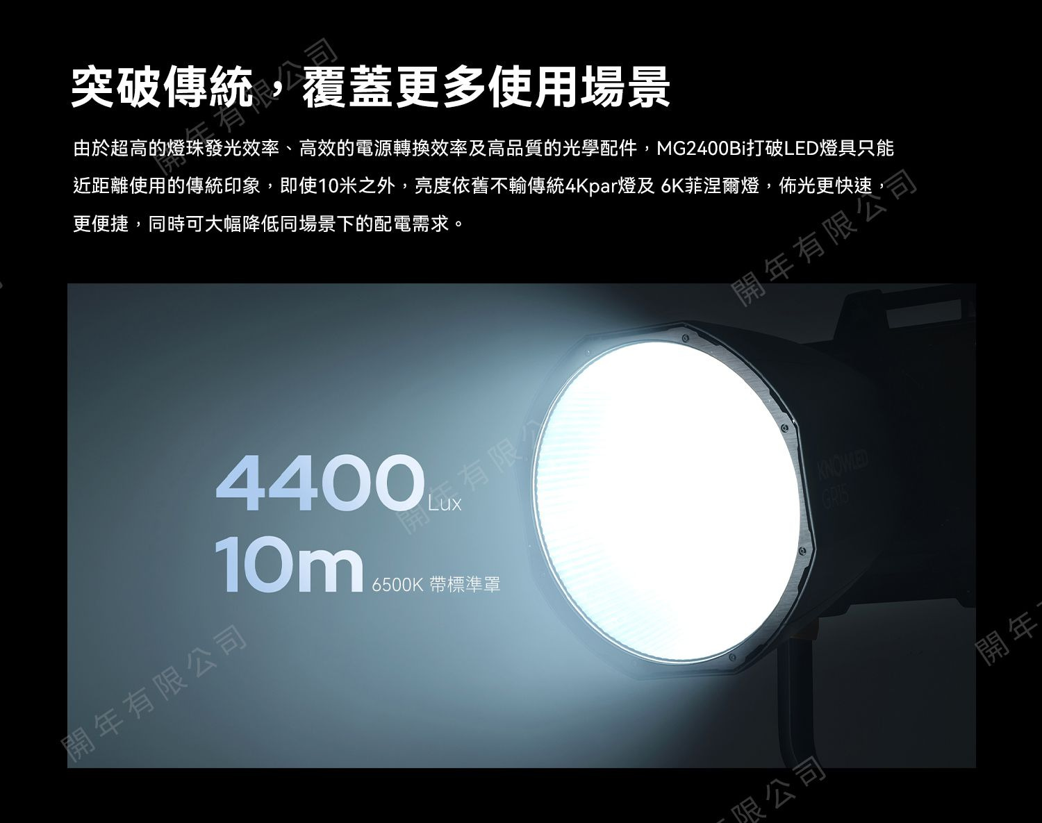 即使10米外,亮度依舊不輸傳統4Kpar燈及6K菲涅爾燈,佈光更快捷,同時可大幅降低同場景下的配電需求