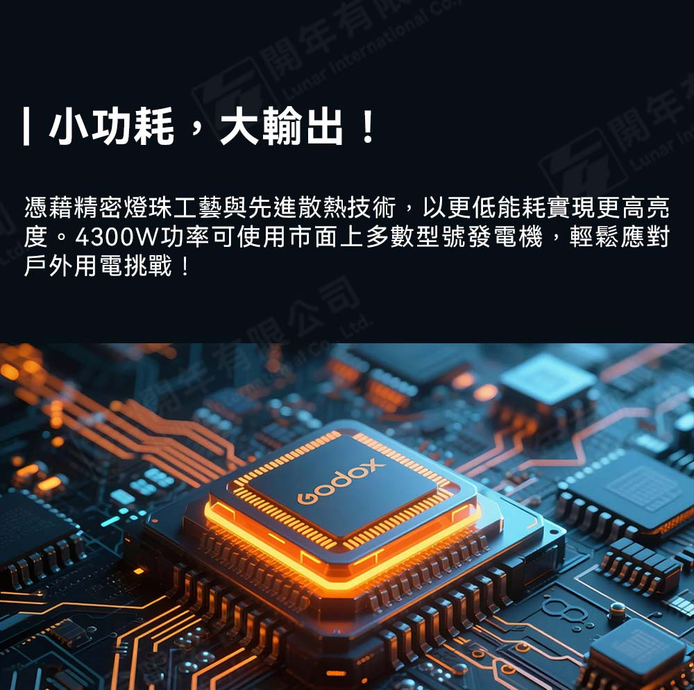 4300W功率輸出,亮度輕鬆超越傳統6K鏑燈,可搭配市售常規發電機使用