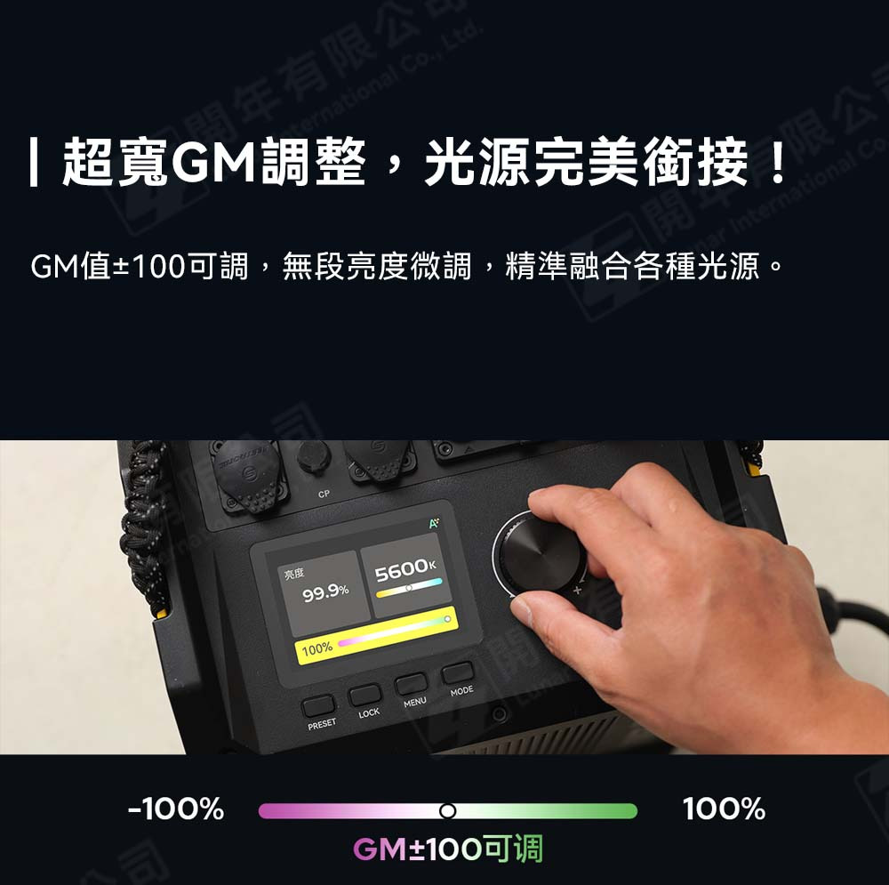 GM值±100可調,千分級亮度微調,精準融合各種光源
