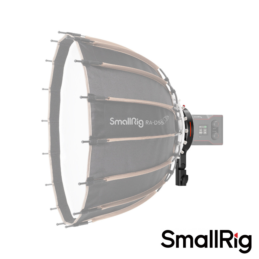 SmallRig Bowens Mount 轉接器零件號 4476 可連接到 RC 60B 的前端,並安裝在燈架上。為 RC 60B 提供擴充功能,使其能夠適配各種緊湊型燈架以及 C 型燈架。相容於市面上大多數常用的 Bowens Mount 配件。