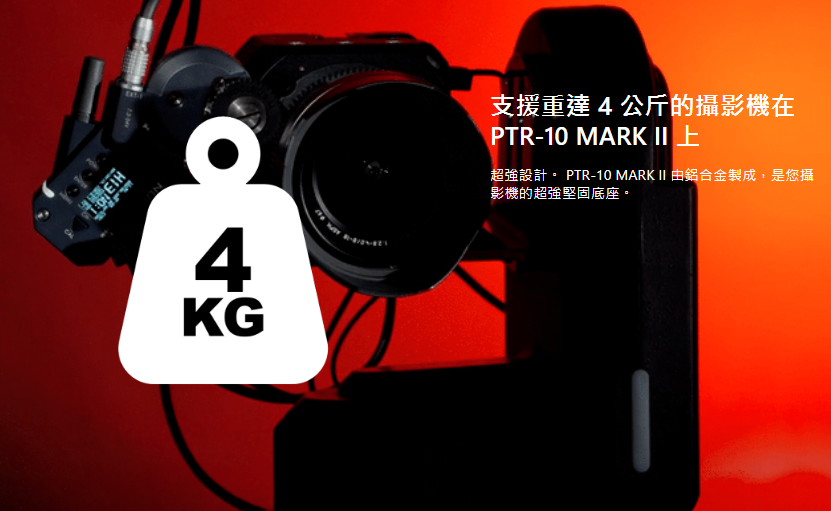 此外,PTR-10 / PTR-10T 還可以與WM-10 電動遙控雲台固定架搭配使用,WM-10 最重可承重10KG,甚至可倒置電動遙控雲台,大大提升PTR-10 的應用靈活度。