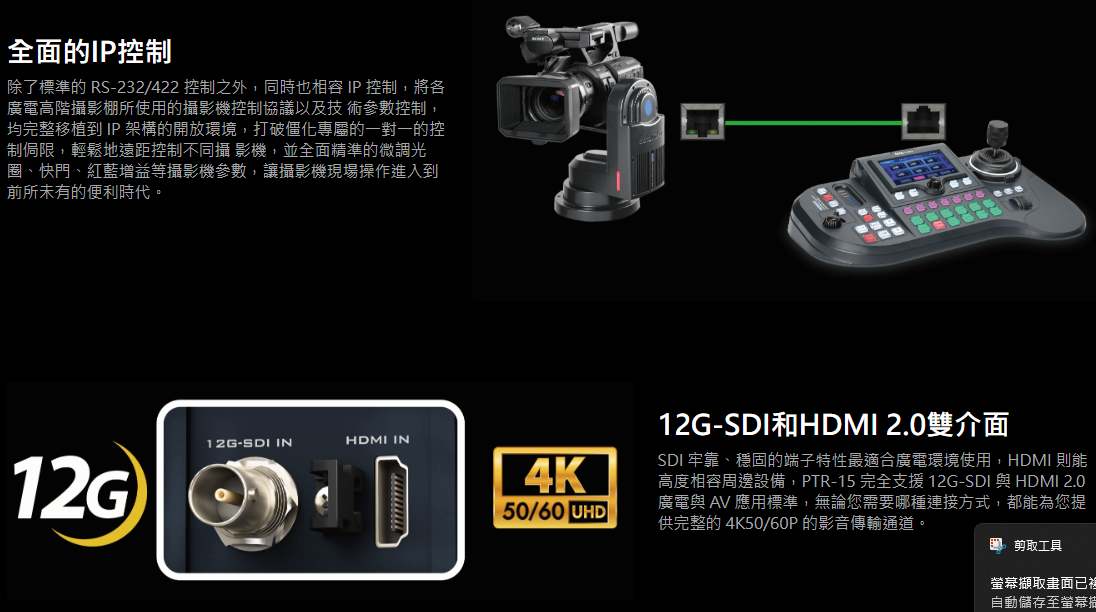 SDI 牢靠、穩固的端子特性最適合廣電環境使用,HDMI 則能高度相容周邊設備,PTR-15 完全支援 12G-SDI 與 HDMI 2.0 廣電與 AV 應用標準,無論您需要哪種連接方式,都能為您提供完整的 4K50/60P 的影音傳輸通道。