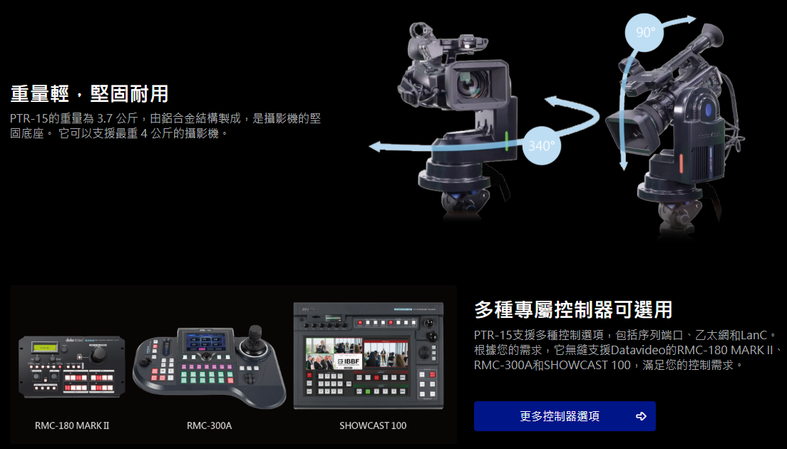 Datavideo的PTR-15電動遙控雲台結合了先進的運轉技術和AR/VR系統。