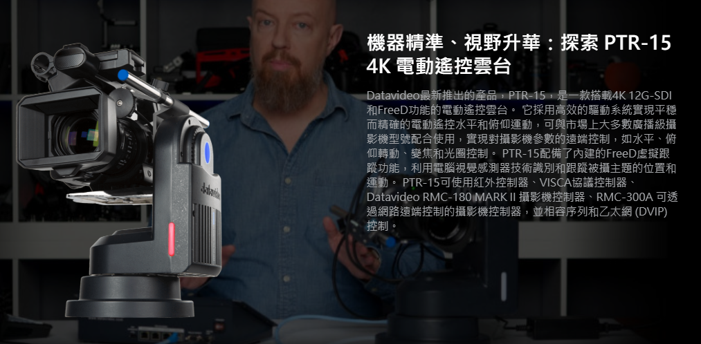 Datavideo最新推出的產品,PTR-15,是一款搭載4K 12G-SDI和FreeD功能的電動遙控雲台。