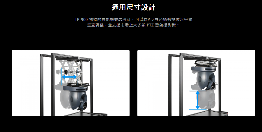 TP-900 PTZ 雲台攝影機讀稿機專為 PTZ 雲台攝影機設計。