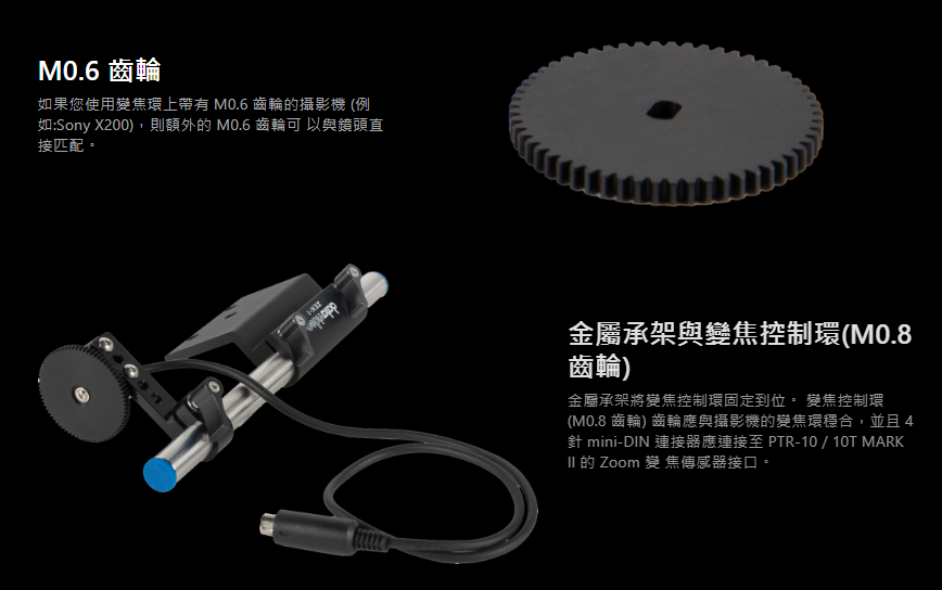 如果您使用變焦環上帶有 M0.6 齒輪的攝影機 (例如:Sony X200),