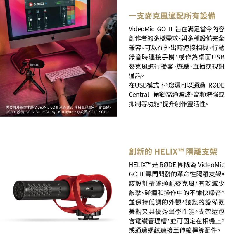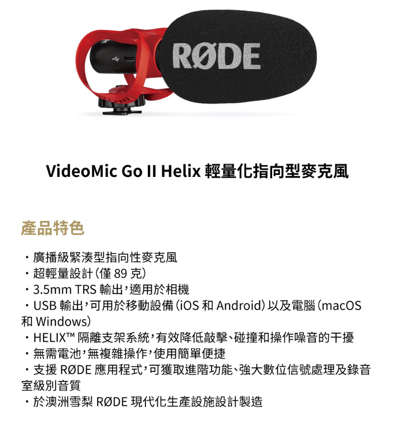 支援 RØDE 應用程式,可獲取進階功能、強大數位信號處理及錄音室級別音質
